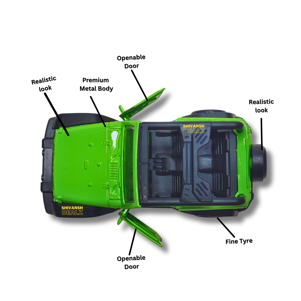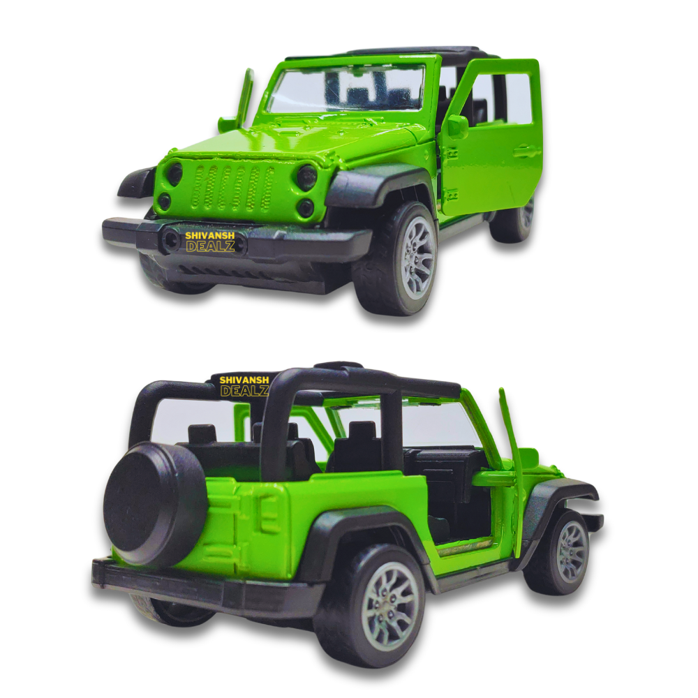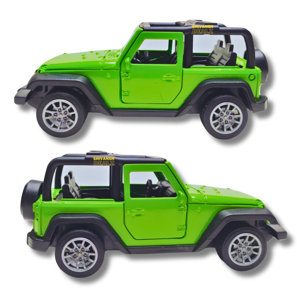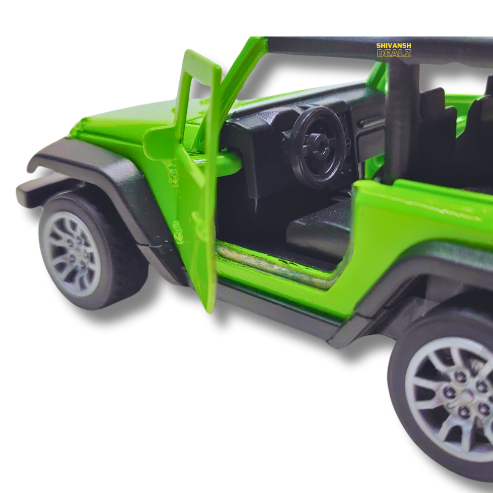 Shivansh Dealz – Mahindra Thar Diecast Metal Toy Car, 1:36 Scale, Pull Back Action, Openable Doors (Green)Shivansh Dealz – Mahindra Thar Diecast Metal Toy Car, 1:36 Scale, Pull Back Action, Openable Doors (Green)